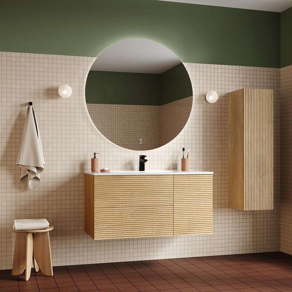 Стильное круглое зеркало Bild диаметром 100 см со встроенной LED-подсветкой и системой антизапотевания. Не имеет рамы, за счёт чего смотрится воздушно и легко, и благодаря универсальному дизайну украсит интерьер любой ванной.