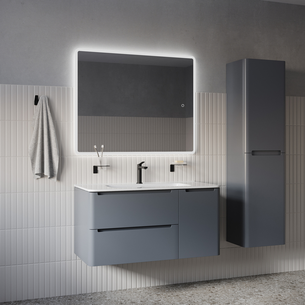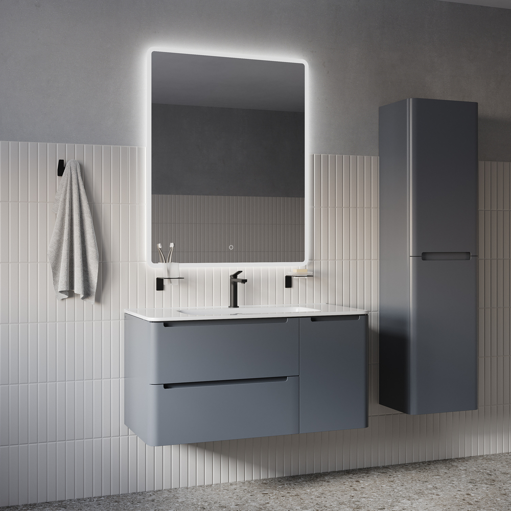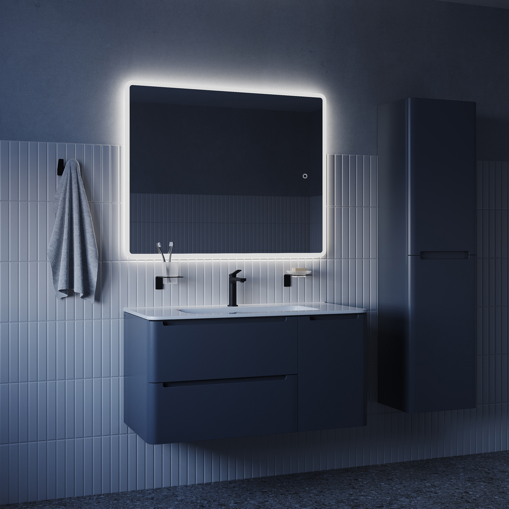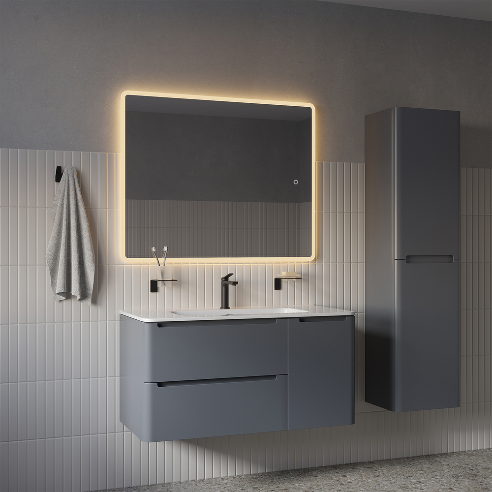 Большое стильное зеркало Uniq – продуманное универсальное решение для современной ванной благодаря возможности повесить его горизонтально или вертикально, а также трём цветам подсветки в одном зеркале – можно выбрать оптимальный по температуре: тёплый (3 000 К), нейтральный (4 500 К) или холодный (6 000 К).