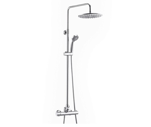 Стойку для душа А13302 Thermo можно регулировать по высоте. Для этого необходимо выдвинуть верхнюю часть стойки и зафиксировать на необходимой Вам высоте при помощи гайки верхнего крепления.